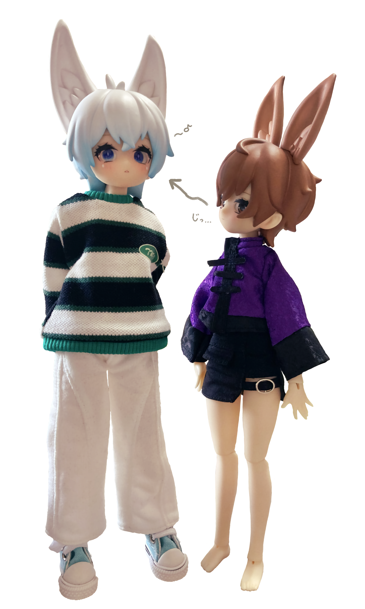とはいえ、うちにいる1/6の子たちもボディ変更しただけでも結構サイズ感が違うのでそういう物なのでしょうか…。1/12の子たちが特に小さいから、1cmあたりの違いを実感しやすいだけかもしれませんね。それでも20cmは1/8に頭を突っ込んでいる気がする